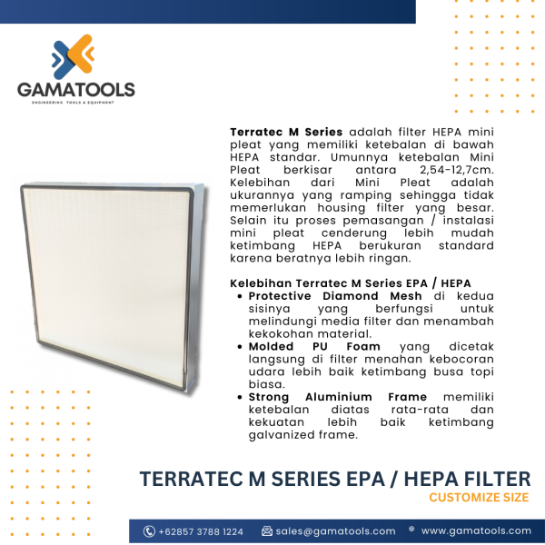 Filter HEPA mini pleat yang memiliki ketebalan di bawah HEPA standar. Umunnya ketebalan Mini Pleat berkisar antara 2,54-12,7cm.